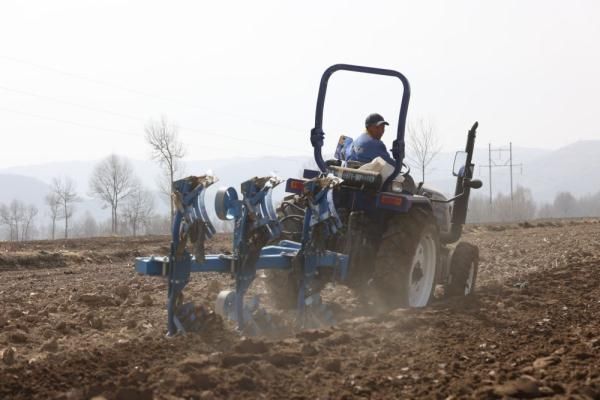 村民姜有盛双手紧握方向盘,驾驶拖拉机翻整田地。他不时地回过头,查看拖拉机行进轨迹是否出现了偏差,及时调整速度和方向。“地里今年种洋芋,对土地透气性和排水性要求高,要保证每一寸土地翻整到位。”
