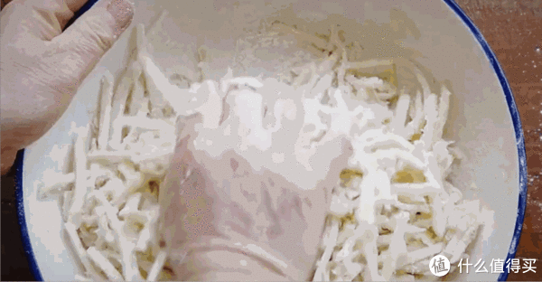 在甘肃陇东南地区,土豆不再是以简单的片、丝或块状出现在大众眼前,而是做成了如芝士般会拉丝的泥状。土豆经过清洗、煮熟、剥皮和反复捶打、拉伸等一道道繁琐工序,才最终呈现出又韧又糯的搅团模样。